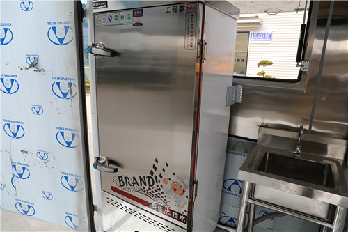 大運奧普力國六云內126馬力國六移動餐車上裝配置:箱體外冷板,內不銹鋼板,5cm復合保溫板,底板防滑花紋鋁板,廂體帶不銹鋼凈水箱、洗手池、污水箱、燃料箱、不銹鋼爬梯護欄,加裝雙眼灶、平冷柜、蒸飯車、不銹鋼菜架等。