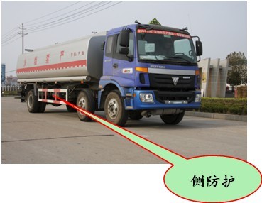 1)油罐車特有裝置功用: 是指專門的后下部防護裝置或者依靠自身的外形與特性能夠具有后下部防護裝置功能的車輛的車體、車架部件或其他部件。