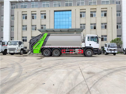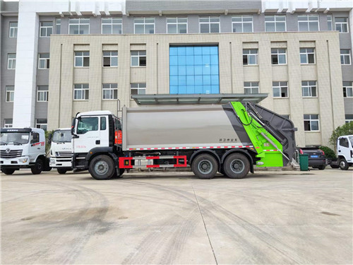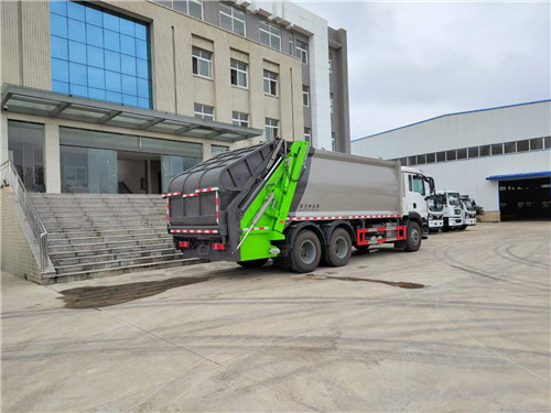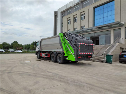 國六重汽汕德卡后雙橋壓縮式垃圾車:容積18-22立方,國六濰柴350馬力發動機,G5-M系列駕駛室,軸距:4300+1350,豪沃10檔變速箱,5.5噸前橋,11噸雙后橋(選裝12檔變速箱,16噸雙級輪減橋),280大梁,11.00R20鋼絲胎,300L鋁合金油箱,四通道ABS,博世方向機,氣囊座椅,電動玻璃,中控鎖,搖控鑰匙,可調節多功能方向盤,電動調節帶加熱后視鏡。國六重汽汕德卡后雙橋壓縮式垃圾車全方位圖片展示: