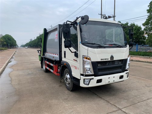 國六豪沃7方壓縮式垃圾車底盤配置:1.9米寬單排駕駛室、5噸后橋、氣喇叭、7.00R16鋼絲胎、空調、中控門鎖、電動門窗、遙控鑰匙、120升鋁合金油箱,國六豪沃7方壓縮式垃圾車圖片展示: