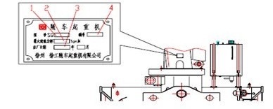 1、起重機(jī)型號 2、最大的起矩重力 3、出廠日期 4、出廠編號