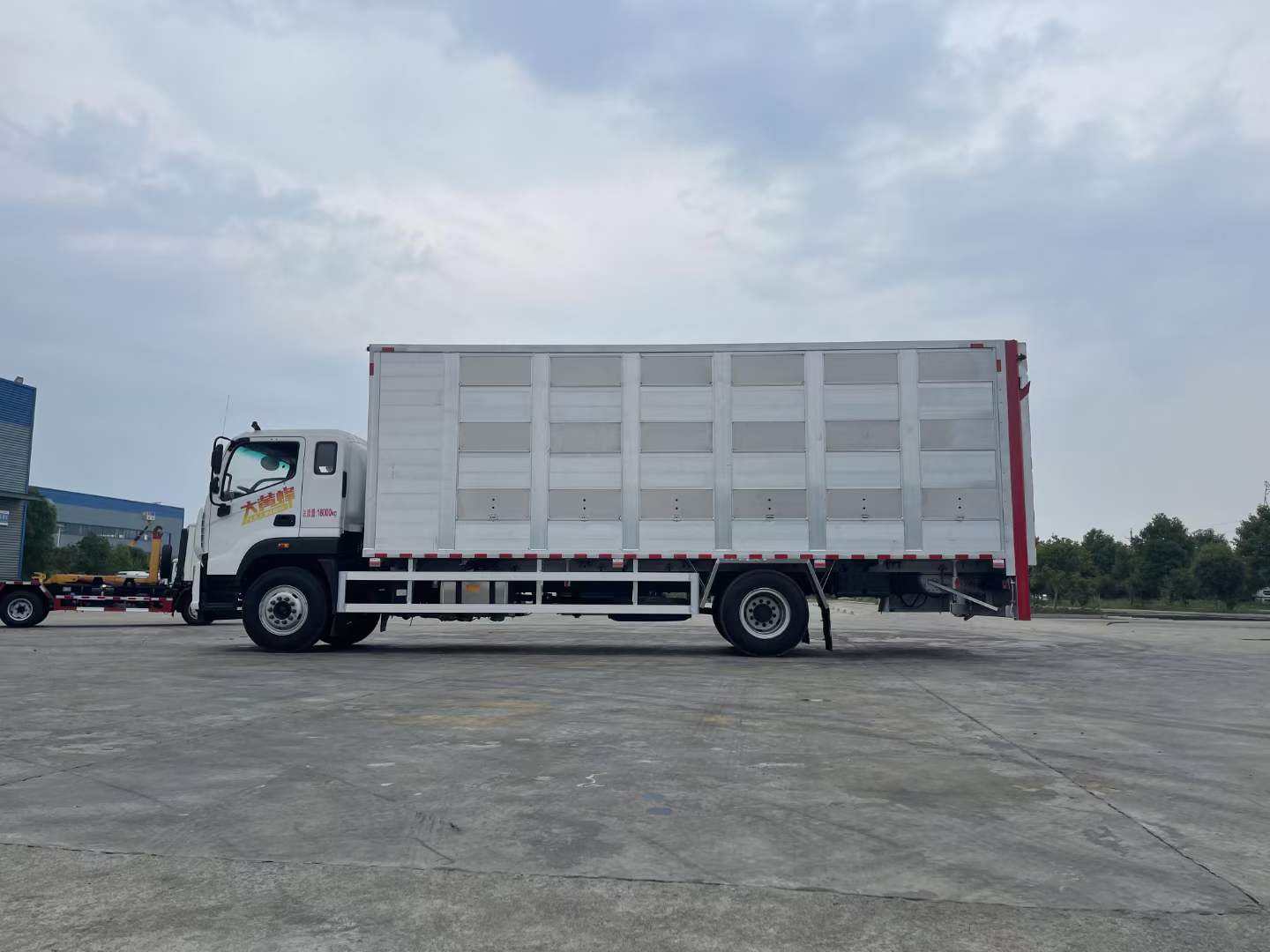 福田奧鈴單橋畜禽運(yùn)輸車,玉柴245馬力發(fā)動機(jī),法士特8檔變速箱,5750mm軸距,電動玻璃,中控室,遙控鑰匙,空調(diào),廂體長度7.7米,箱體采用高強(qiáng)度鋁合金專業(yè)定制型材拼裝焊接而成,整車三層,每層3個欄位,共9個欄位,每欄配2個鴨嘴式飲水嘴和2個噴霧頭,內(nèi)部的地板可翻起,頂部的天花板可以翻起(可選裝自動頂升),方便人員進(jìn)出各個欄位,裝卸豬,進(jìn)行沖洗,車廂前部配備9個送風(fēng)風(fēng)機(jī),后部配備6個排風(fēng)風(fēng)機(jī),共15個,進(jìn)行每層的交替吹風(fēng),配備雙溫機(jī)組,調(diào)節(jié)廂內(nèi)溫度,配備空氣過濾,車尾部整體液壓升降平臺,廂內(nèi)帶監(jiān)控攝像頭和溫度探頭,可實(shí)時監(jiān)控。環(huán)保?燃油齊全