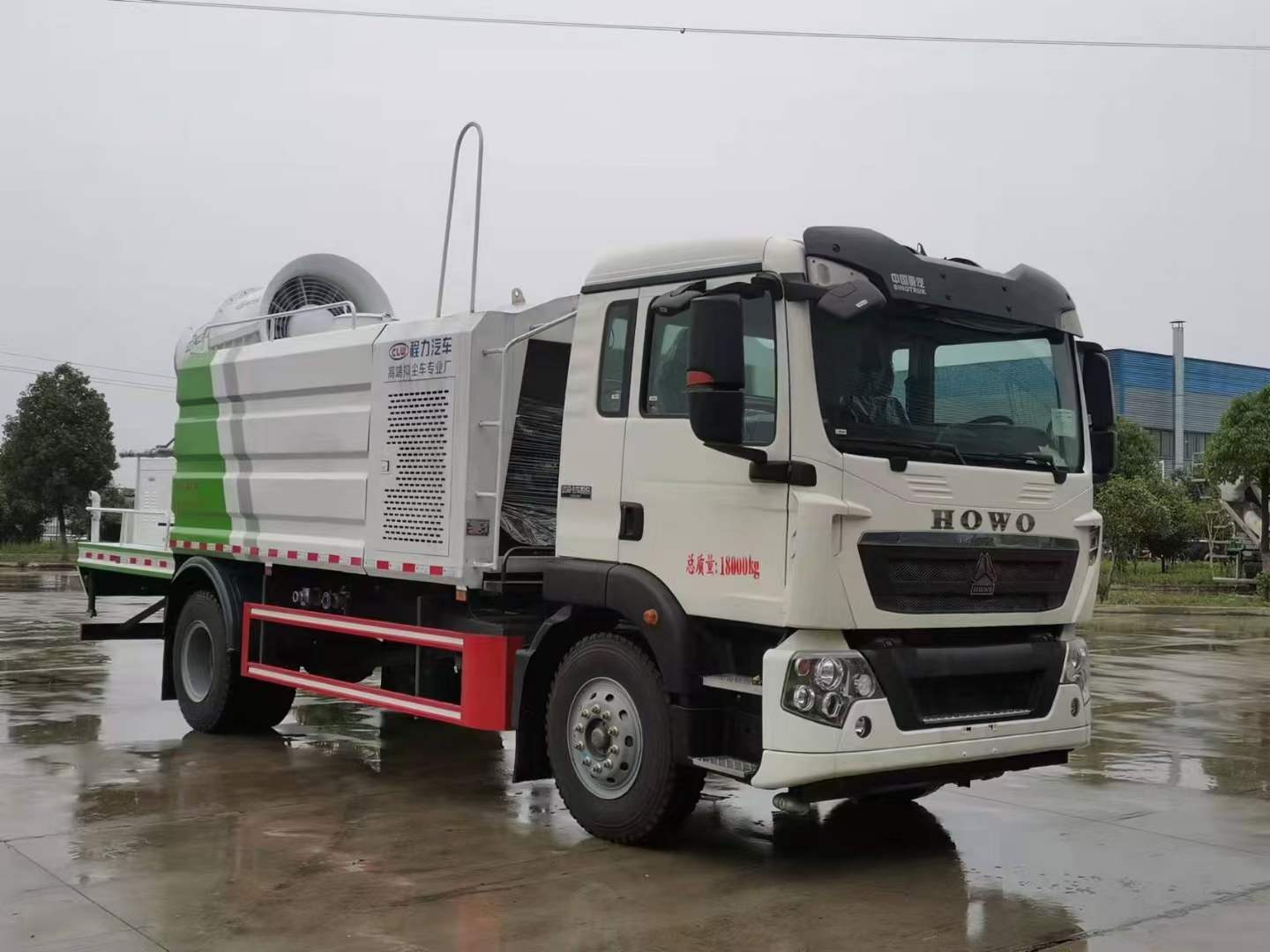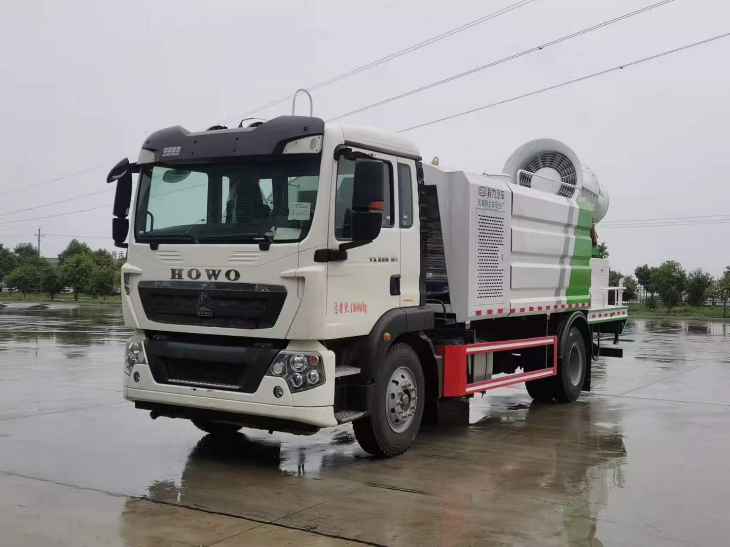 重汽豪沃TX抑塵車上裝配50米電機(jī)霧炮。