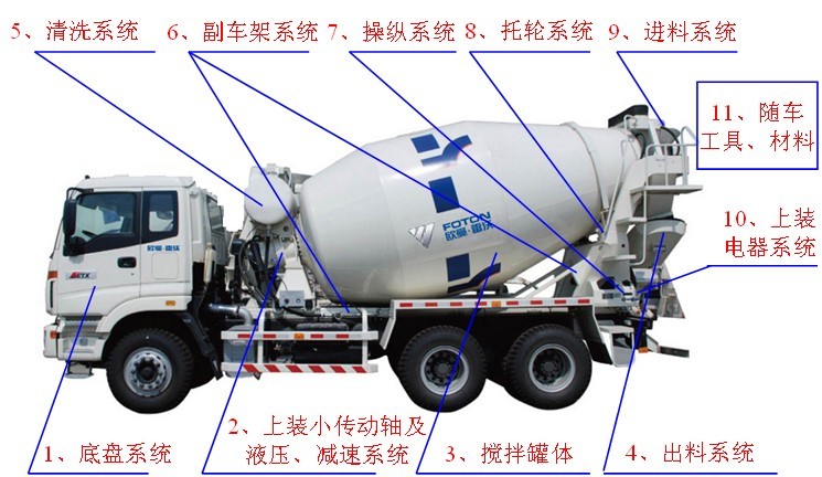 一、湖北程力混凝土攪拌運輸車由哪十一個部分組成?如下圖: