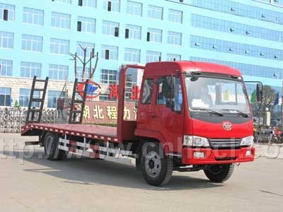 我公司是國家發改委批準從事專用汽車的定點生產制造企業,也是東風汽車集團專用汽車的改裝基地之一,集專用改裝汽車的產品研發、生產制造、產品銷售及售后服務于一體,公司以過硬的產品質量和完善及時的售后服務鑄就了專用汽車的又一品牌—"程力威".公司產品已全面通過ISO9000-2000質量管理體系認證和CCC強制性認證,企業被評為湖北省消費者滿意單位,"程力威"專用汽車產品也被評為消費者滿意產品,同時取得了湖北"守合同、重信用企業"稱號. 挖機平板運輸車適用于公路路面機械、攤鋪機、鐵銑機、壓路機以及工程履帶設備等各種公路、市政、建筑大型施工機械設備的轉場運輸.它具有靈活方便、自主上下(各履帶式工程設備可自行上下平臺,無需其他任何起吊設備及輔助工具)、升降自如(跳板采用內隙自調液壓增力式裝置,可自行升降)的特點.挖機平板運輸車首次采用串聯式平衡懸掛,運輸道路無論平整、凹凸,懸掛系統都能均衡受力,從而保證了車輛在運輸過程中安全無損壞.安裝防滑條,保證被運輸車輛的安全性 。
